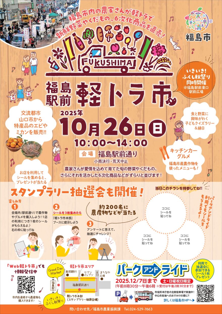 10月26日(日)に福島駅前軽トラ市を開催します!