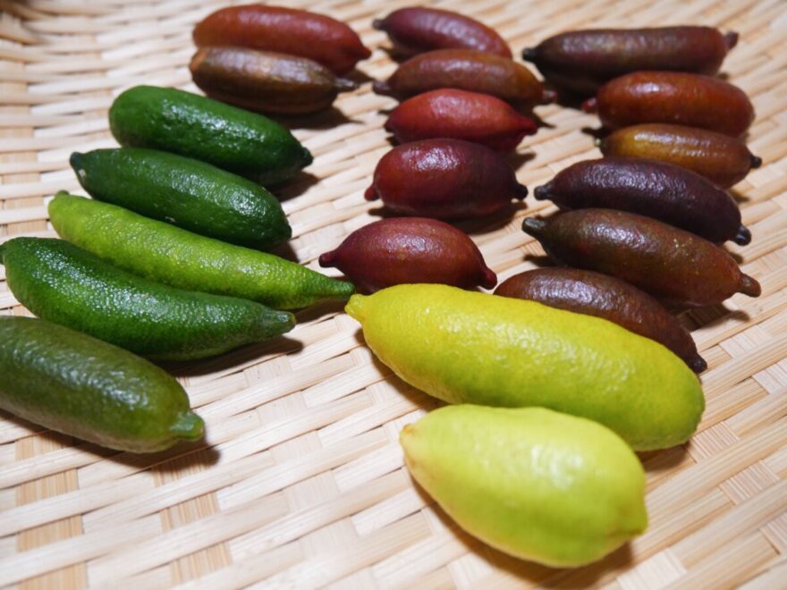 PIENI FARMでは現在14品種のフィンガーライムを栽培しています。四季咲きで長い期間収穫できるもの、一期咲きで隔年結果(※3)しやすいもの、粒状の果肉ができるまで時間がかかるものなど、特性はさまざまです。