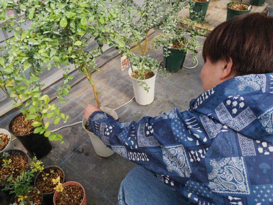 その後、退職を機に明善さんが代表として、PIENI FARMを立ち上げ。現在は果樹生産用のビニールハウスにて、フィンガーライムやレモンなどの柑橘類を育てています。 将来的な生産者の拡大も見据え、台木となるカラタチを栽培し、自前での接木苗も生産しています。